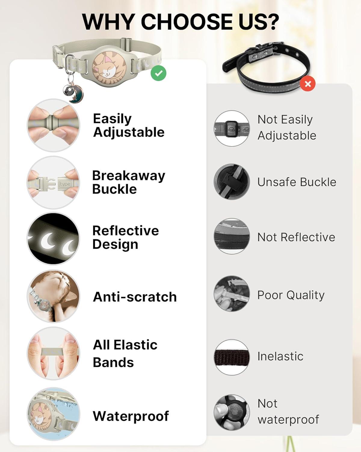 Integrated Airtag Holder: Never lose track of your beloved pet again with our built-in cat collar airtag holder. Compatible with Apple's AirTag, it seamlessly integrates airtag tracking into the cat collar, giving you peace of mind wherever they roam.
