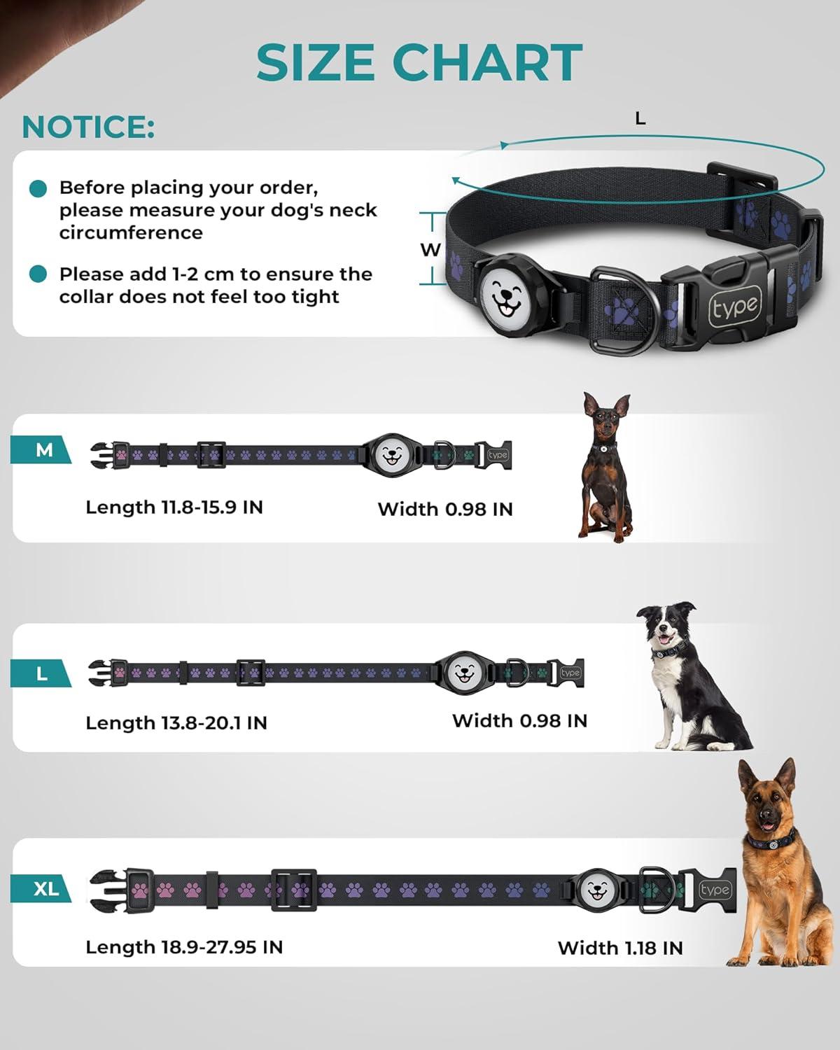[Comfortable & Durable for Daily Wear]: Crafted with soft yet sturdy materials, this collar provides long-lasting comfort without odor or irritation. Adjustable AirTag collar is available in 3 sizes (M, L, XL). Please measure the circumference of your puppy's neck before purchasing. Adjustable fit ideal for medium and large dogs.