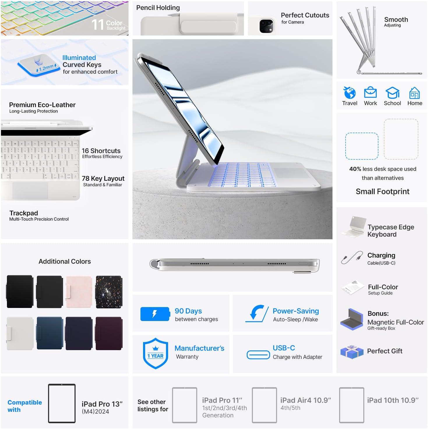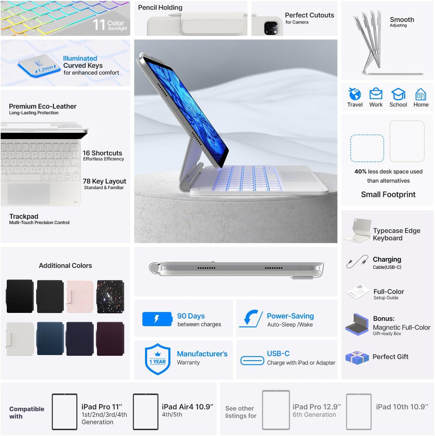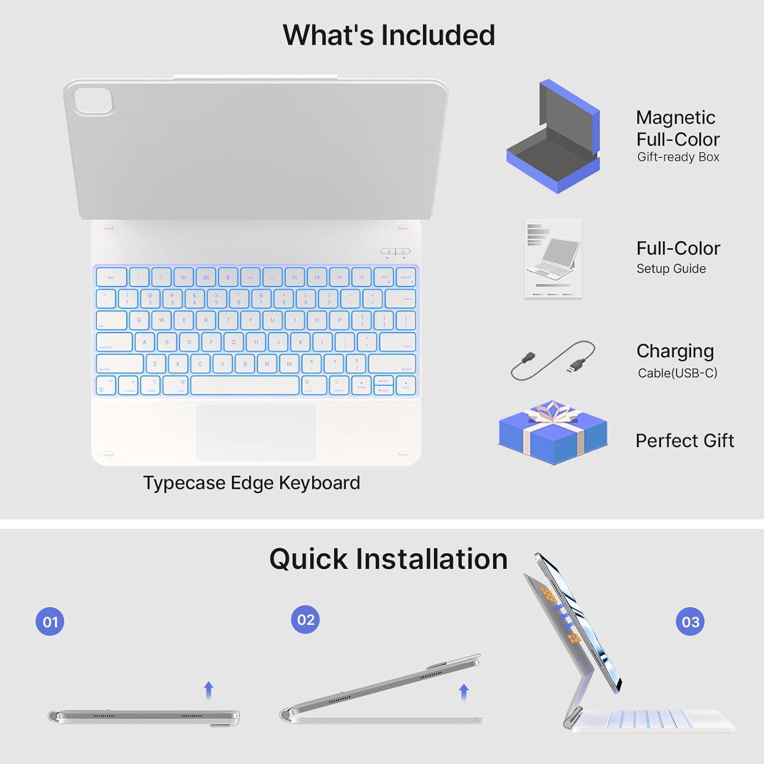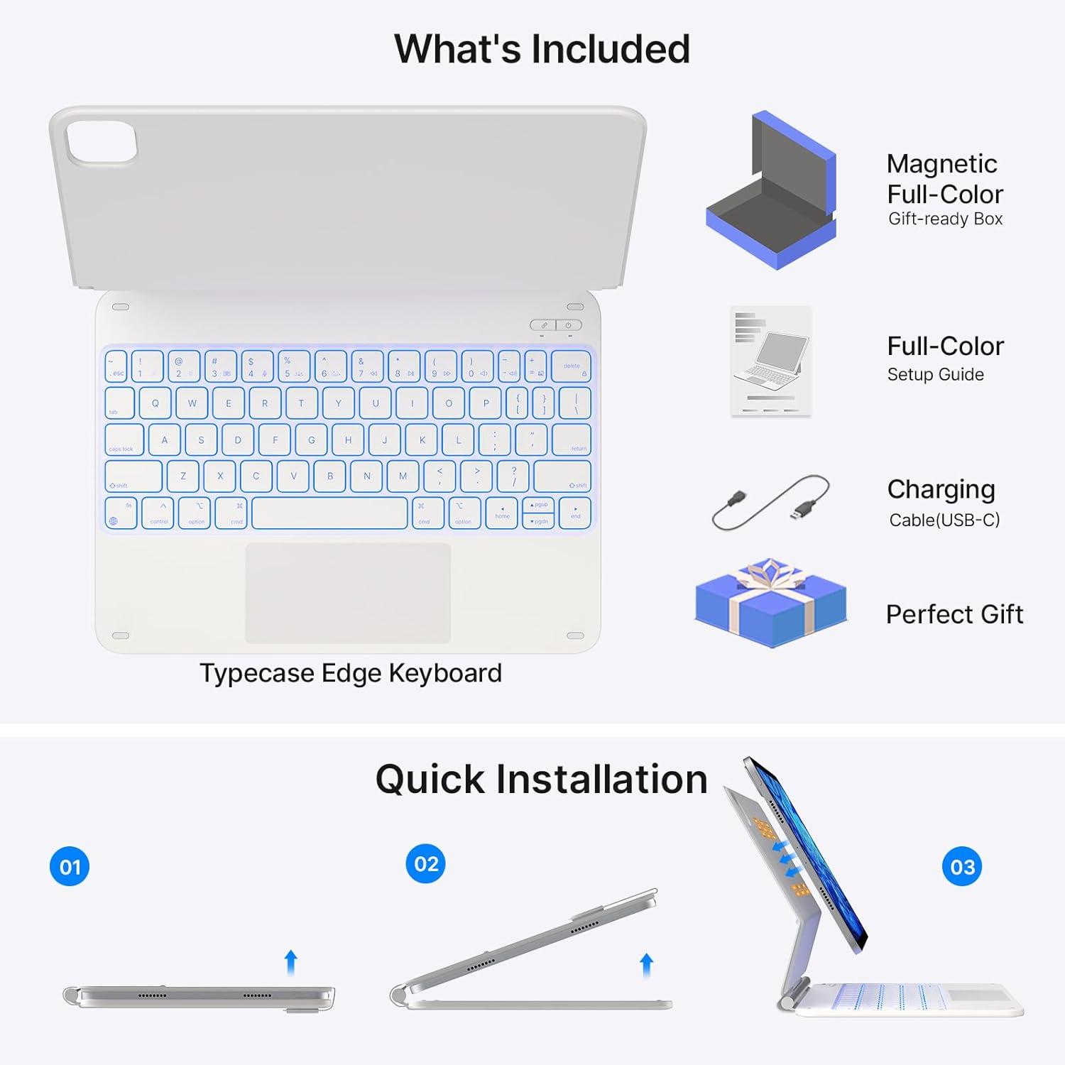 typecase Edge Keyboard Case for iPad Air 11-inch(M3/M2, 2025/2024), iPad Pro 11-inch(4th/3rd/2nd/1st Gen) & iPad Air 10.9-inch 5/4th Gen, Floating Magnetic Stand,Multi-Touch Trackpad,Midnight Amethyst(White)