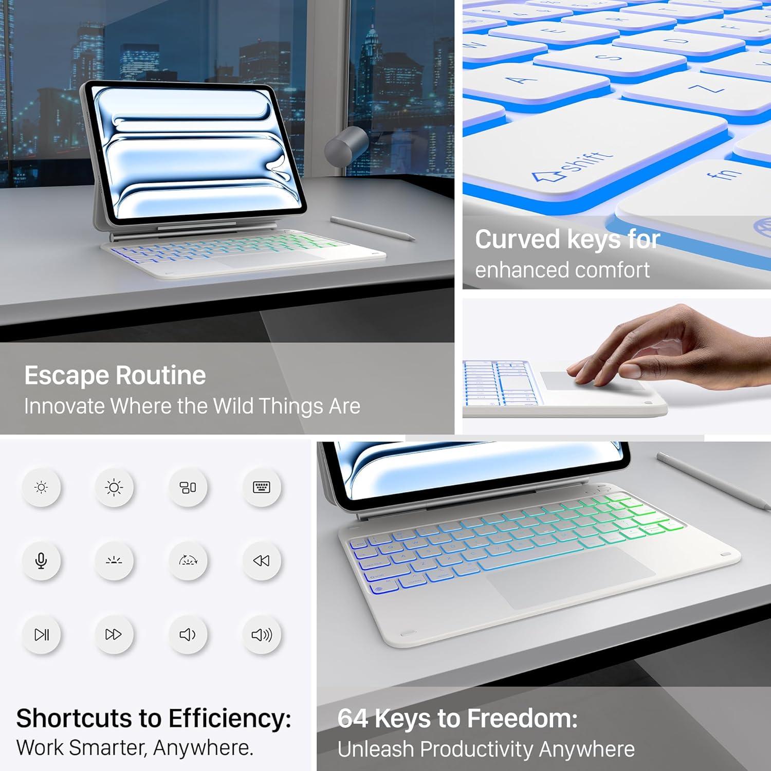 ๐๐น๐ถ๐ฐ๐ธ ๐๐ป๐๐๐ต๐ฒ๐ฟ๐ฒ: Elevate your iPad experience with our precise, versatile keyboard. Effortlessly navigate work and play with a full-area trackpad.