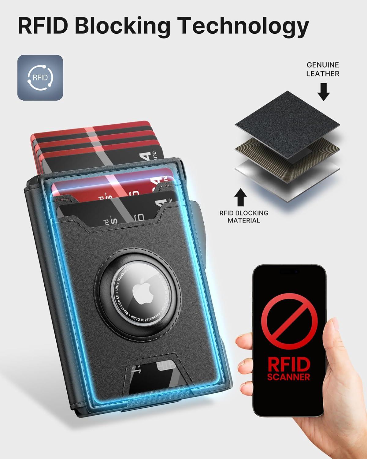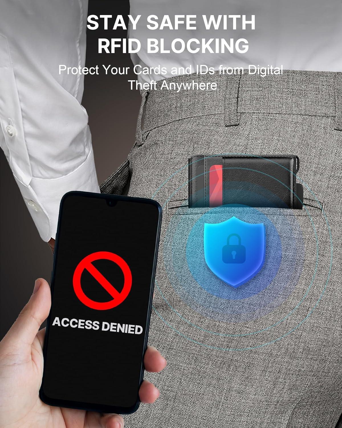 RFID Protection: Protect your cards and personal information with advanced RFID blocking technology, effectively blocking the 13.56 MHz frequency. This ensures that your cards are protected from unauthorized scanning.