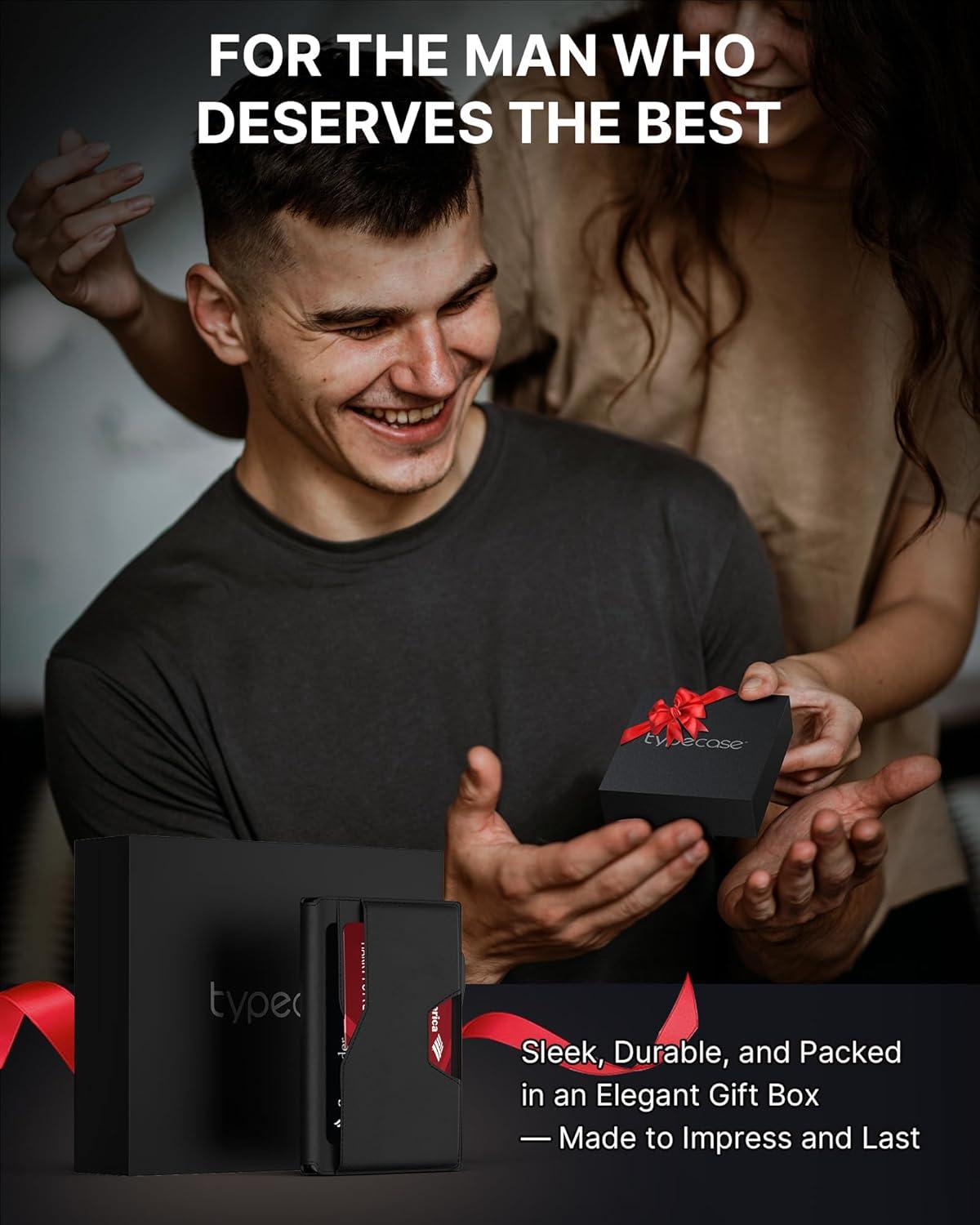 typecase Wallet for Men: Rfid-blocking with Money Clip Slim Leather Bifold ID Window Smart Pop Up Card Case Front Pocket Wallet with Gift Box (Carbon Fiber Black)(Black)