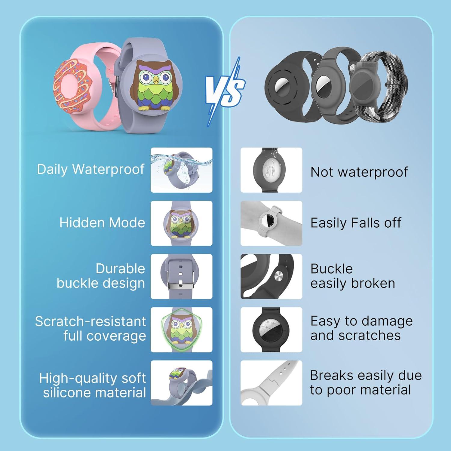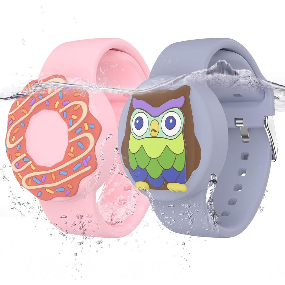 Waterproof Air tag Bracelets for Kids (2 Pack) – Soft Silicone Hidden Air tag Wristband – Lightweight GPS Tracker Holder Compatible with Apple Airtag Band for Child (Penguin/Donut)(Donut & Owl)