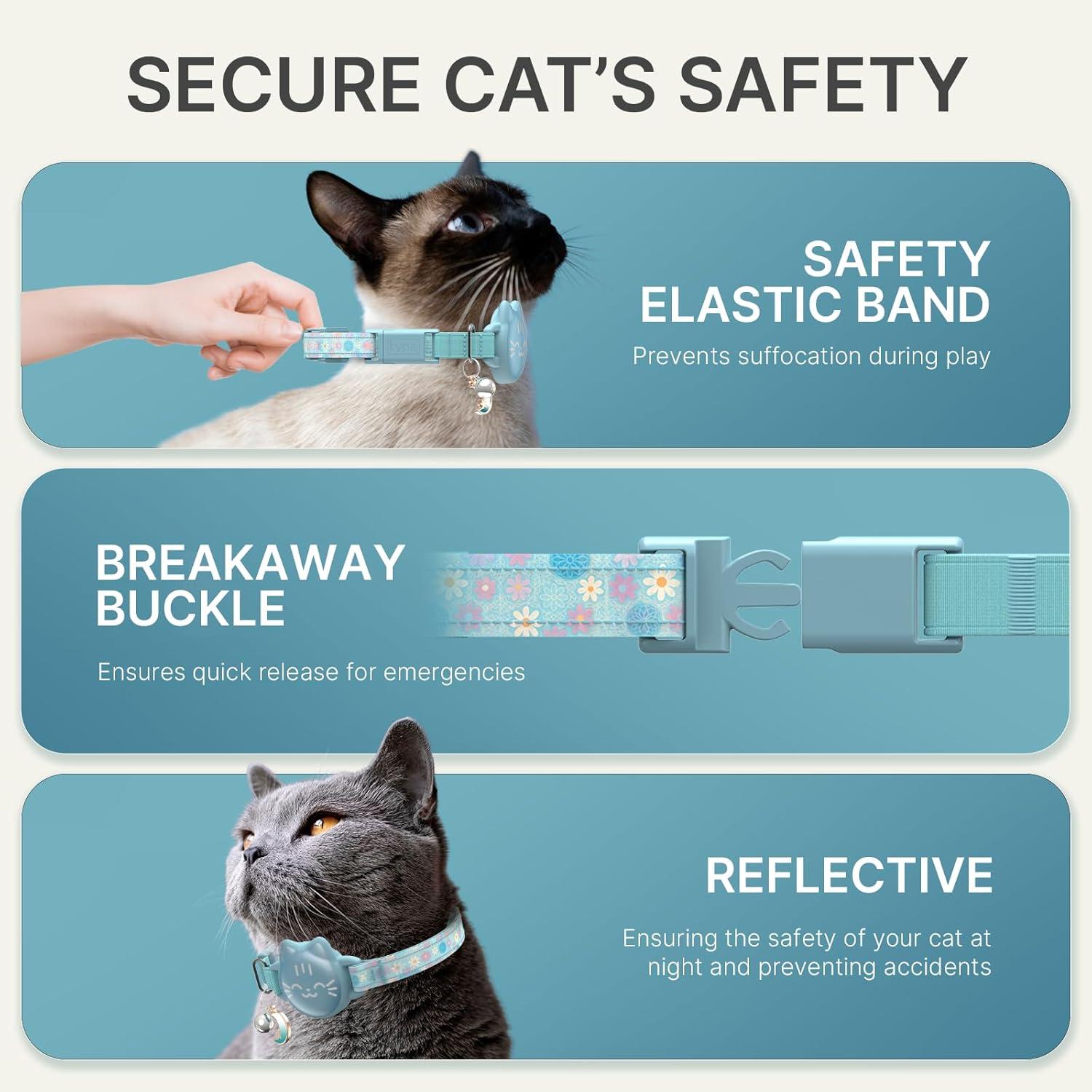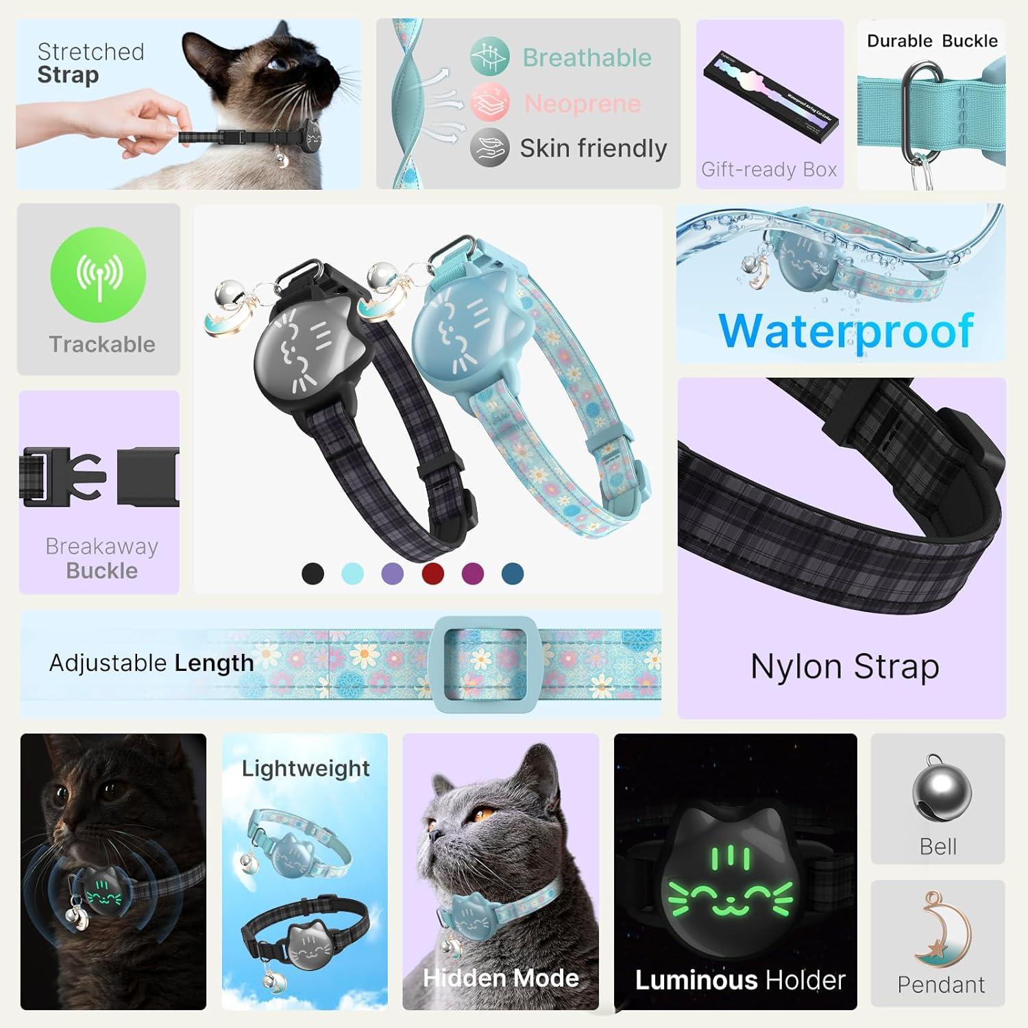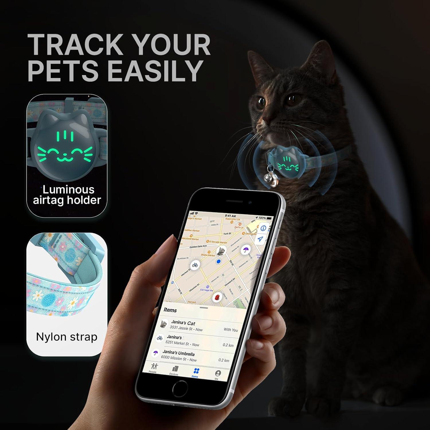 SAFETY FIRST, ALWAYS:This collar’s got your cat covered—literally! With a smart breakaway buckle and reflective fish pattern, your cat can conquer nighttime adventures while you rest easy knowing they’re safe and stylish. (Airtag not included)