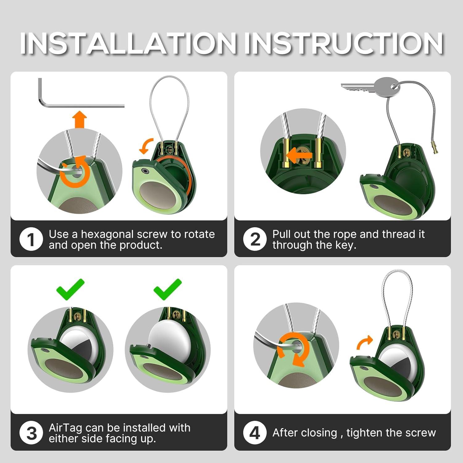 Secure and Durable Build: The Airtag case features a secure hexagon socket screw(3/32inch) and braided steel cable, ensuring a strong grip. Its durable construction prevents slips or damage, offering lasting protection for your belongings