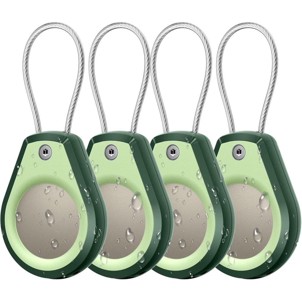 Waterproof AirTag Keychain Holder – (4 Pack) Air tag Lock Case with Wire Cable Compatible with Apple AirTags, Ultra Durable Anti-Lost Protective Case with Keyring for Luggage, Key, Backpack, Black(Avocado)