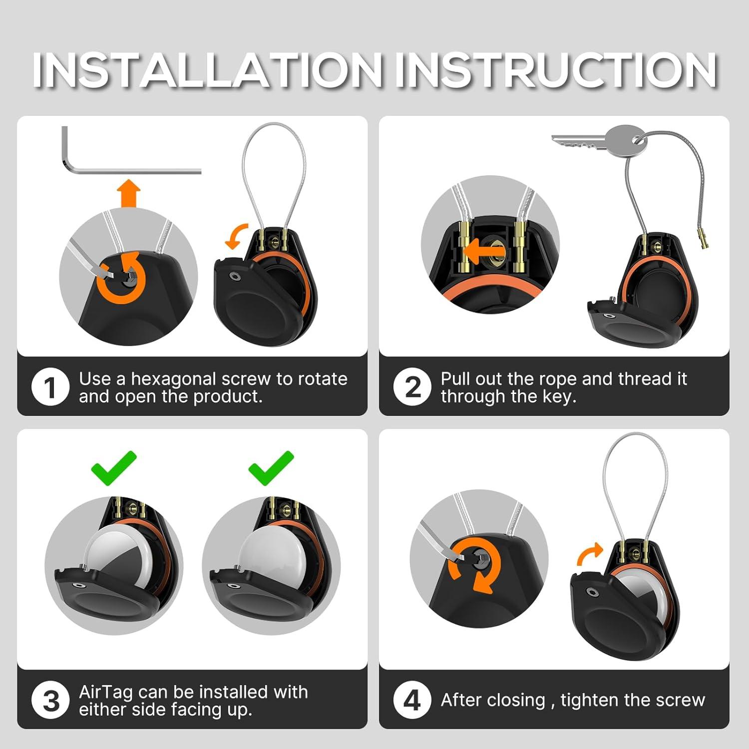 Secure and Durable Build: The Airtag case features a secure hexagon socket screw(3/32inch) and braided steel cable, ensuring a strong grip. Its durable construction prevents slips or damage, offering lasting protection for your belongings